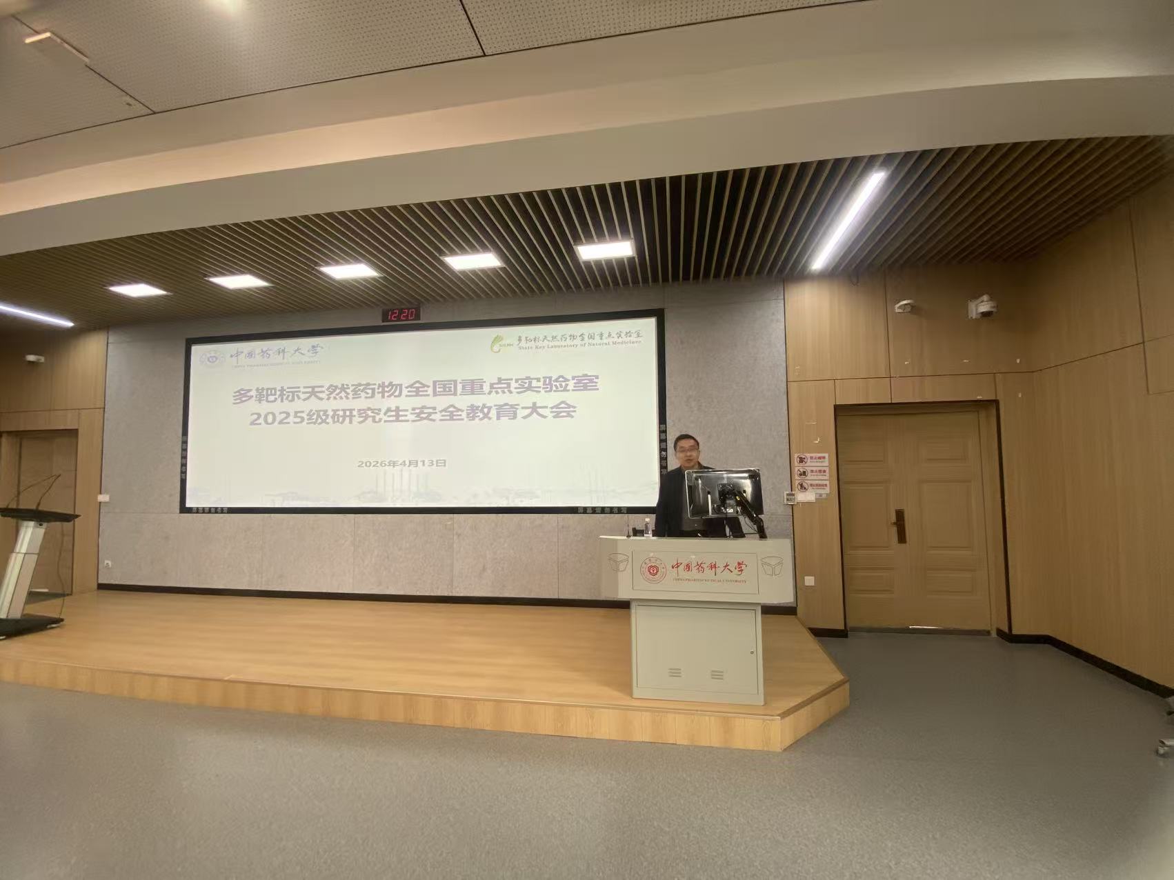 在第十一个全民国家安全教育日来临之际,为深入贯彻总体国家安全观,紧扣“统筹发展和安全,护航‘十五五’新征程”主题,切实将国家安全理念融入科研人才培养全过程,多靶标天然药物全国重点实验室于4月13日召开2025级研究生安全教育大会,全面强化师生国家安全、实验室安全及日常生活安全意识。全国重点实验室副主任郑啸、保卫处副处长笪永胜出席大会,全体2025级研究生参加会议。