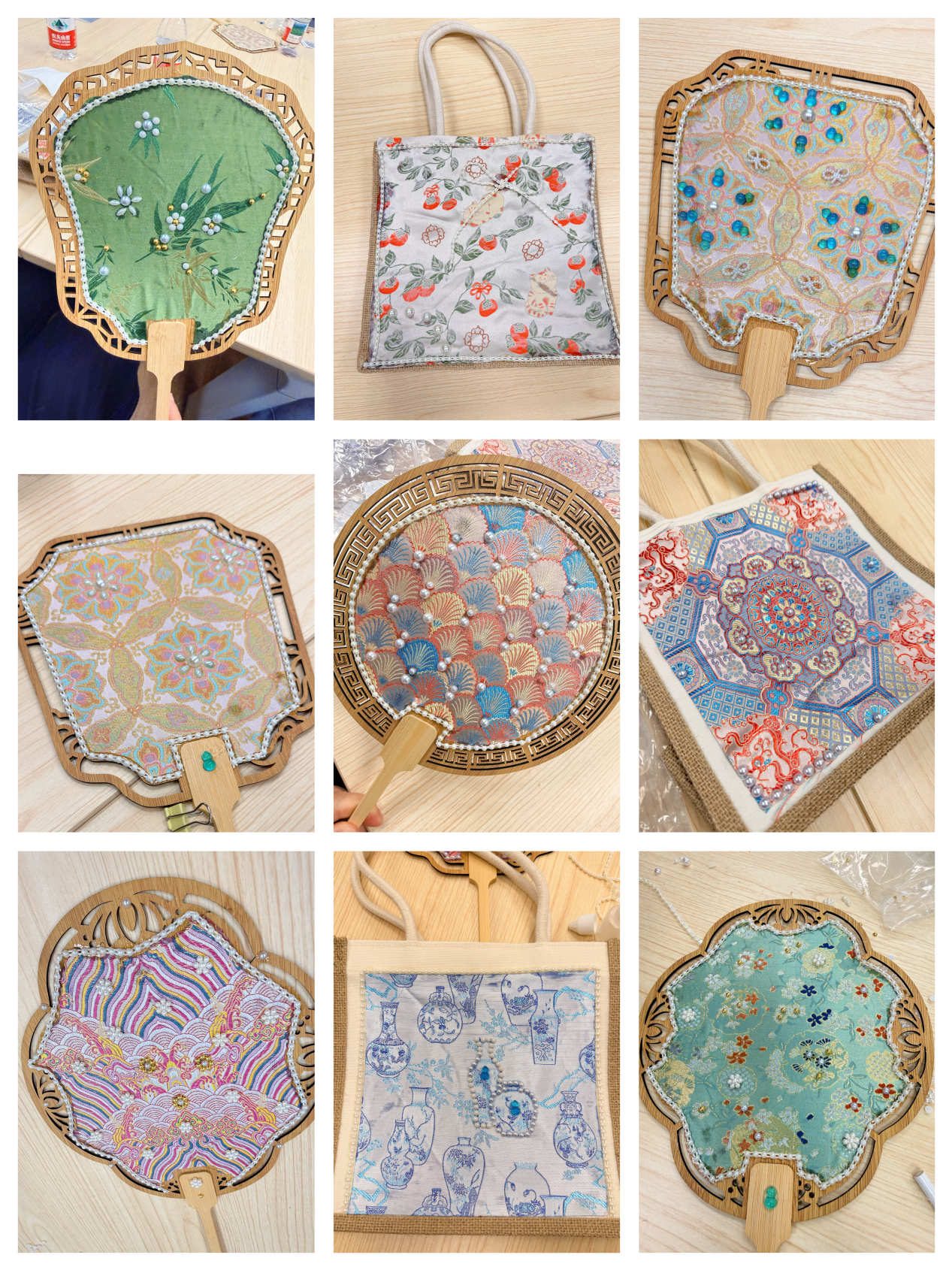 活动现场氛围温馨融洽,大家静心创作、悉心打磨,精心制作非遗宋锦包与宋锦珍珠扇。指尖流转间,一件件兼具古韵与匠心的手工作品陆续完成,尽显宋锦非遗之美。现场气氛融洽,大家交流心得、畅谈感受,在轻松惬意的氛围里拉近了彼此距离,进一步凝聚了团队向心力。