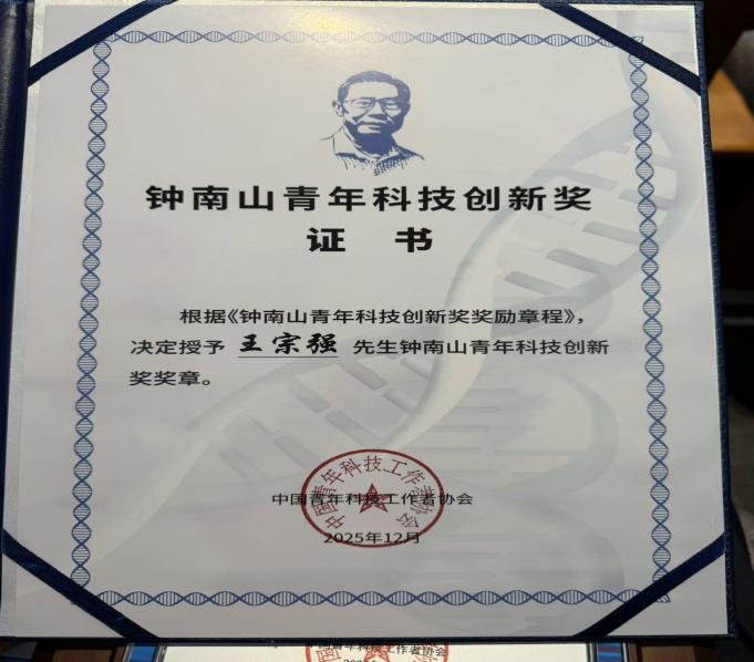 我校王宗强教授荣获第四届钟南山青年科技创新奖